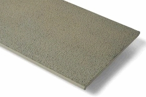 Premium, sound absorbent, noncombustible fiber reinforced cement board with sheet steel backing and permanently bonded non-slip, safety grit surface. Available with optional smooth surface for covering by others.